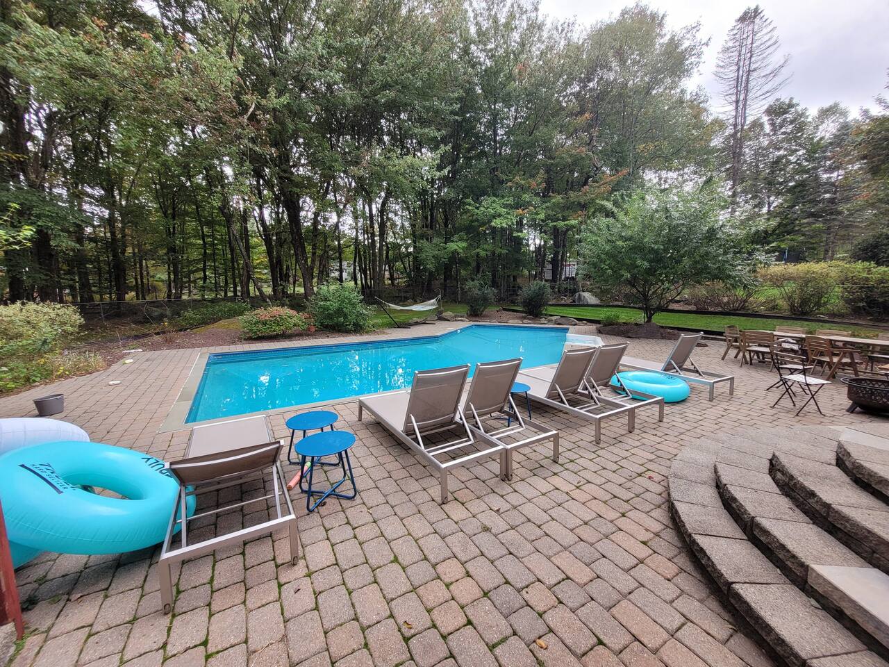 Spacious property with tons of living space! Starring a gorgeous sunroom with our INDOOR Hot Tub, a heated Pool, Game Room with a pool table, foosball table and games for everyone to hang out and enjoy. Don't miss the BBQ grill, firepit, kitchen, bright dining room or comfy TV couches! A perfect Getaway to our beautiful private mini-estate in the heart of the Catskills, just 90 minutes from NYC. [Sleeps groups. for 20+ guests ask for price)